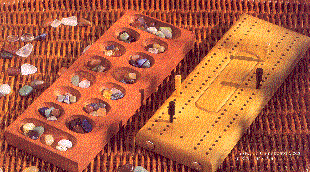 Here are two great board games for travelers. The traditional game of mancala is based on arithmetric strategy. It originated over 3000 years ago in Africa. The playing pieces are created from tumbled minerals and the set makes a beautiful gift. Each game includes history, techniques and game rules. On the right is everybody's favorite - Cribbage. Both games are a size of 9" X 3 1/4" x 3/4" and the minimum custom imprintable quantity is 150.