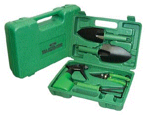 The Five piece Gardeners' Tool Set consist of a cultivator, large trowel, small trowel, spray bottle and pruner with a wrist strap. The case that holds the items is 11 1/22" wide X 7 /2" high X 2 3/4" in depth. The imprintable area on the outer part of the case is 4" X 2" with a minimum imprintable quantity of 50.