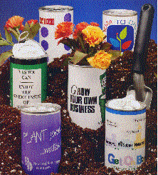 Grow Cans are a living reminder of your thoughtfulness. If you wish to send an environmentally friendly keepsake the Grow Can is the perfect gift. Each container is wrapped with your custom label and secured with a metal pop-top lid. Everything needed for starting a mini-garden is inside; potting soil, seeds ( stock seeds include Zinnias, Marigolds and Coleus) and directions.