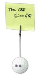 Here is a great award or incentive item that any golfer will be excited to display on their desk. The 1 3/4" X 5" golf ball memo holder has a metal cable and alligator clip to hold documents and notes. It provides an imprint area on the ball of 3/4" X 5/8" and in the minimum imprintable quantity of 150 is less than $ 1.95 each.