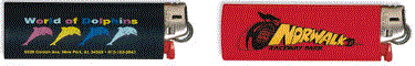 We carry various types of lighters but perhaps our most popular lighter is the BIC. Pictured below are two BIC lighters. The minimum imprintable quantity is 250. They are a must for hiking and camping and also are great for that backyard barbecue.