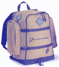 This classic rucksack with one main compartment and two side pocket. Features comfort zone straps with 3/4" web felt. Available in pine/black or khaki/black. The imprintable area is 3" X 5" and the minimum imprintable quantity is 24.