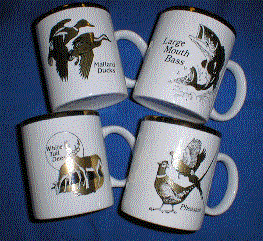 Here is a set of Hunting Mugs with four different stock imprints of Mallard Ducks, Large Mouth Bass, White Tail Deer and Pheasant. These make great gifts that all will appreciate.
