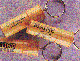 These shotgun shell keytags are made of natural hardwood with a plastikote finish and a nickel-plated snap ring are imprinted with ad copy on the barrel in any standard color. The keytags are 2 1/2" X 3/4" with an imprint area for your custom message of 9/16" X 1 1/8". Minimum order with your custom imprint is 250.