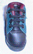 TheSneaker key chain is available in colors of either Blue or Red. It measures 3" X 1" X 1" and your imprint would be on the White oval disc. Minimum imprintable quantity is 300.
