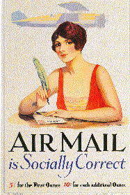 In 1925, six years after the end of World War I. the US government was in the airmail business and trying to sell the service. Commercial airplanes looked like the one behind the lady's head in the ad. They were exclusively mail planes, made of wood covered with fabric, bi-winged with the pilot sitting in an open cockpit toward the rear of his plane so he could watch the ailerons and tail flaps which controlled his flight. An inventor named William B. Stout was convinced that the plane could be made with metal rods inside and covered with a metal skin. He believed the mail plane could be enlarged so that passengers could sit inside protected from the weather. He eliminated the lower wing, enlarged the upper, and put the pilot at the front of the plane. Henry Ford liked the result so well he bought Stout's company and went into the aviation business in 1925.