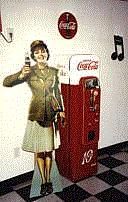 Johnny Weisimuller and Maureen O'Sullivan. the Thirties' Tarzan and Jane, appear on a 1934 tray. Drugstore Cokes were served in the classic bell-shaped Coca-Cola glasses etched with the logo. And of course the glasses deserved an appropriate way for delivery to the customers' table.