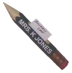 This 12" Pencil has a built in business card holder and is available in pencil colors of Black, Blue, Dark Blue, Dark Green, Red, White and Yellow. The imprint area is 6" X 3/4" and the minimum imprintable order is 12