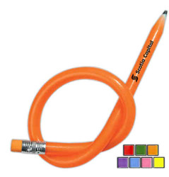 The 12" Flexible Pencil can be bent into the shape of your choice and it available in seven different colors. The imprintable area is 2" wide X 1/4" high with minimum imprintable area beinfg 150.