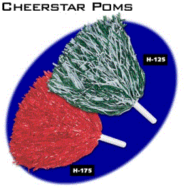 Designed especially for the young cheerleader, cheerstar poms are ideal for playtime and parties. They have a 4" handle and can be easily gripped by small children. They have 1250 - 12" plastic streamers or 1750 - 12" plastic streamers. Available in 24 colors with a minimum of only 12 pom pons without an imprint or with an imprint the minimum is 100. The imprint area is 2 1/2" X 3/4".