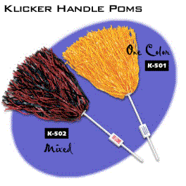Thes Pom Pons feature 750 streamers strand per item. Featuring a built in clicker in the handle that will really make your next promotion really click. The bacside of the clicker features an ample imprint area of 1 3/4" X 7/8". Stramers are available in 24 colors. Minimum order is 200 pom pons.