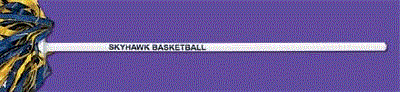 Pictured below are the 12" long unbreakable plastic handle available in a 500 count strand pom pon. These are available in either solid colors or mixed colors at no extra charge. A total of 24 colors are available for you to choose from. The imprint area on the handle is 3 3/8" X 1/4". Minimum order is 200.