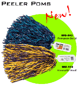 The Peeler Pom Pons feature a peal off label that can be used in conjunction with a local advertiser. These are also available in over 24 streamer colors. The imprint area is 3 1/4" X 1 1/4". Minimum order is 200.