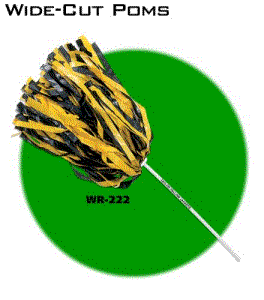 For a "Bolder Look" we offer wide cut Pom Pons in all of our handle styles. These Poms feature 7/16" wide X 220 streamers on each individual pom pon. These also can be done in either solid colors or a two color mix of colors. Minimum order is 20 pom pons.