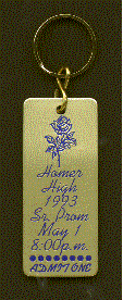 Here is another popular idea for Proms-key tags made from aluminium or brass imprinted with the info on that special Prom. Minimum custom imprintable quantity is 250.