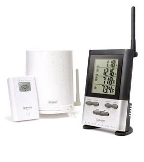 This is the complete set-up for recording both rain amounts and outdoor temperatures. It has an automatic self-emptying cup that measures and then eliminates rainfall. It has a wireless transmission range of up to 300 feet for the rain gauge and 100 feet for the thermometer. Displays daily, 9 day historical, and total rainfall records. Shows both in inches and millimeters for rainfall. Has a high daily rainfall alarm. Also displays indoor and outdoor temperatures. Runs on 2 AA batteries for the main and 2 AAA batteries for thesensor. Dimensions are 3 1/2" long X 1" deep X 5.6" high.