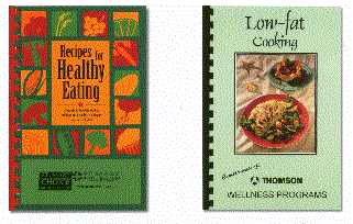 The Recipes for Healthy Eating has recipes for healthy eating with no added sugar, salt or fat which is a good fit for any health program. The Low-fat cooking recipe book has great-tasting, low-fat recipes plus nutritional information.