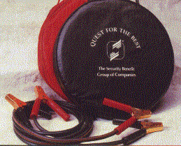 This strong, durable, low-profile vinyl case fits into the trunk or other vehicle storage compartment and uses only a minimum of space. It keeps those all important booster cables protected, neatly stored, and ready for use. 8 foot cables, (10 gauge, 200 amp) Minimum imprintable quantity is 25.
