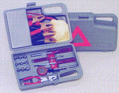 The Compact Highway Emergency Kit contains a tire inflator/sealer, safety flare, powerful flashlight (requires 2 "C" batteries-not included), distress flag, tie-down strap,and a touring manual. The case can also be used to carry water in case the radiaror overheats. Minimum imprintable quantity is 25.