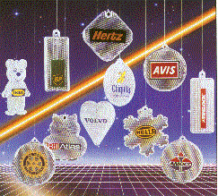 The hard molded reflectors are available with a variety of dangling string styles, plus a split ring for key tag use and a badge clip/hook for clipping to outer clothing.