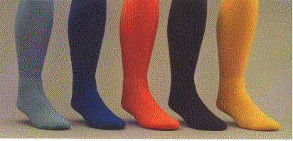 Our Hockey Socks are done in 55% polyester, 45% acrylic and are available in youth sizes of 24" long, home or away, intermediate size of 28" long, home or away and the Adult 32" long, home or away. Minimum quantity is 12 and after the first dozen they are available by the pair.Minimum imprintable quantity is 12 pair per size and the Hockey Socks are available in a variety of colors.