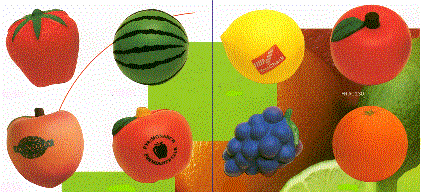 We can produce your imprint on any of our fruit and vegetable stress relievers. Presented below on the left is the strawberry measuring 2 1/4" X 2 1/2" and the imprint area is 1" X 3/4". The watermelon is 2 3/4" in diameter and provides an imprint area of 1 1/4" X 1/2". The lemon is 2 1/2" X 3" and the imprint area is 1 1/4" in diameter. On the far right is 1 1/2" X 1". In the bottom row on the left is a peach that measures 2 1/2" X 2 3/4" and the imprint area is 1 1/4" X 1". Next is the apple that measures 2 1/2" in diameter and has an imprint area of 1 3/4" X 1". The grapes measure 3 1/2" X 2 1/2" and the imprint area is 3/4" X 1/2". The far right is the orange that measures 2 1/2" in diameter and has an imprint area of 1 1/4" in diameter. Minimum imprintable quantity is only 100.