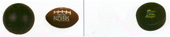 The bowling bowl measures 3" in diameter and has an imprint area of 1 1/2". The football is 3" X 2" and is imprintable in an area of 1/14" X 3/4". The hockey puck is 3" in diameter and can be imprinted in an area of 1 3/4". Minimum imprintable quantity is 100.