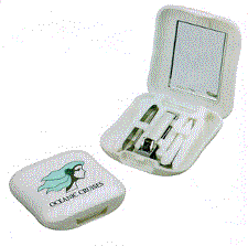 Valuable, useful and packaged in a hard plastic case, this compact gift goes anywhere and is suitable for everyone. Perfect for travel, office or home. The set includes nail clipper, tweezer, cuticle tool an nail file. The imprint area is 1 3/4" X 1 1/4" and the minimum quantity is 100.