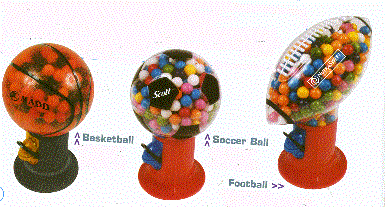 Fill them with all kinds of small snacks like peanuts, trail mix or jelly beans. No coins necessary for these sports themed candy dispensers. Just pull down the lever and out drops your snack. The Basketball is 9" X 5" with a custom imprint area of 1" X 2". The Soccer Ball also measures 9" X 5" and provides an imprint area of 1" X 1". The Football measures 9 1/2" X 7 1/2" X 5" and it has an imprint area of 1 1/2" X 2 1/2". Minimum imprintable quantity on any of these is a quantity of 50 and they are $ 8.50 each (unfilled) with a set-up charge and freight to be added.