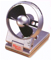 This fan has an adjustable angle and ergonomic design with a removable clamp. Uses 4 AA batteries (not included). Dimensions are 6 1/4" wide X 3 1/4" high with clamp. Imprintable area is 1" wide X 5/8" high. In the minimum quantity of 25 the cost is $ 8.75 each. Set-up charge and freight must also be added.