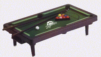 This Miniature Pool Table measures 10 1/2" X 18 1/2" X 1" and provides an imprint area of 3" X 6" on the pool table surface. Minimum custom imprintable quantity is 100 with the cost being $ 12.00 each plus set-up charge and freight