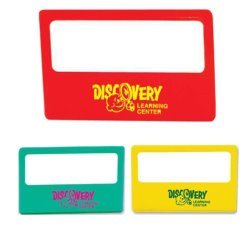 This Magnifier is 3 1/4" in size and provides a large imprint area of 3" X 3/4". Available in Red, Green or Yellow. $ less than a dollar each in the minimum of 150.