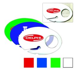 This 4" X 1 6/7" combination magnifier and letter opener is great also for opening CDs and DVDs. The imprint area is 1 3/8" X 3/4" an it is available in Red, Blue, Green and White. Less tahn $ 1.50 each in the minimum of 250.